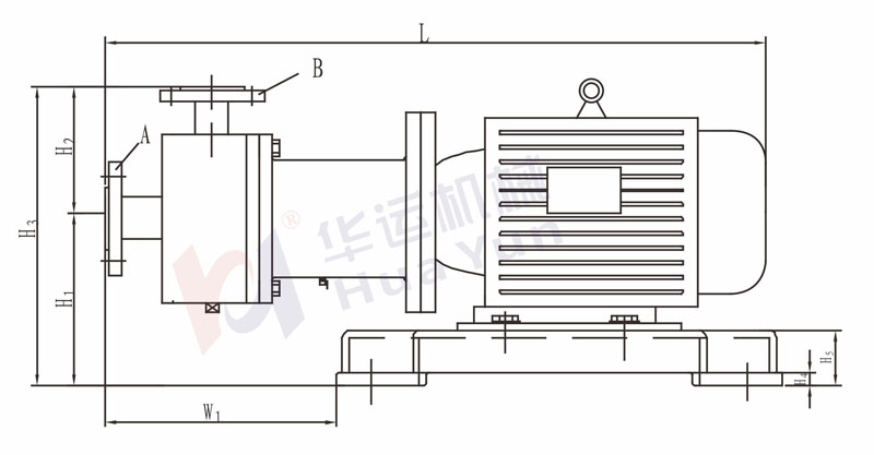 | 名稱 | 功率KW | 轉速r/min | 流量m3/h | 揚程M | L | W1 | H1 | H2 | H3 | H4 | H5 | 法蘭A | 法蘭B | kg | |||||||||||||||